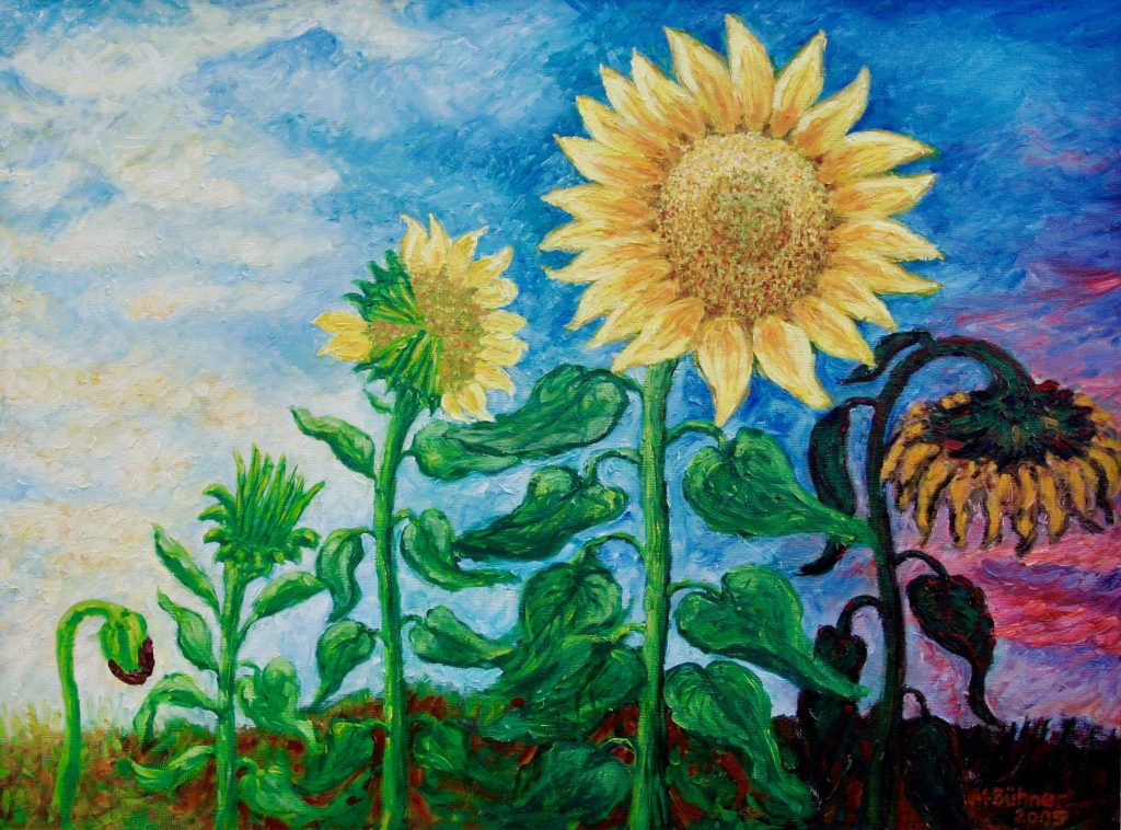 The way I see the world… Art is everywhere, from the smallest patch of nature as painted by Albrecht Dürer to the exciting abstract compositions by Gerhard Richter. And, of course everywhere around us in real life. I like to approach my paintings with the idea of creating something beautiful and personal, a unique piece of art. Composition and design is my focus. Colours bring the painting to life. The contrast created by light and shadow, the warm and the cool, the vibrancy and the light is what I am trying to put on paper or canvas. My subjects are nature, still – life, people and abstract compositions. My paintings are based on visual experiences and on imagination, capturing beauty, colourful nuances, interesting detail and innovative design. I paint in various styles, I do not follow a formula. Painting is like an adventure for me. For most of my life I worked in the graphic arts, photography and advertising. After a broad training in lithography and printing processes, I studied art and graphic design at the Freie Kunstschule in Stuttgart, Germany. After that, I worked for a major publisher of magazines and books in Germany. I came to Canada and joined companies like Eaton’s and Hudson’s Bay Company working in creative positions and management. In the 1980’s and 90’s I formed a partnership with Harold Abrams in an advertising, design and photography studio. Later, I worked on my own, primarily in graphic design and photography for advertisers. Since I retired, I paint still and I take my camera everywhere I go, and I explore new methods of expression. It is a never ending wonderful journey…
